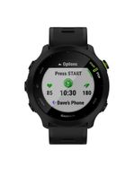 El Garmin Forerunner 55 no se trata solo de ritmo y frecuencia cardíaca. Este reloj GPS para correr está equipado con herramientas de salud durante todo el día y perfiles integrados, un portátil fácil de usar para principiantes que te permite planificar estrategias de carrera con la función PacePro. Ideal para principiantes que quieren intensificar su rutina de entrenamiento, el Forerunner 55 es todo lo que necesitas para iniciar tu viaje.