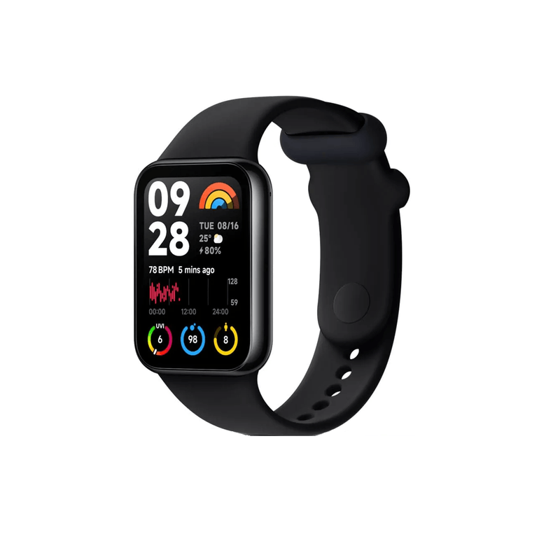 La Mi Band 8 Pro es una smartband Xiaomi con marco metálico de color plata, correa de silicona blanca y certificación 5 ATM de resistencia al agua. Sobre esta se asienta una amplia pantalla AMOLED de 1.74 pulgadas con frecuencia de actualización de 60 Hz, alimentada por una batería de 289 mAh capaz de proporcionar hasta 14 días de uso típico. También incorpora GPS, 150 modos deportivos y seguimiento dinámico del ritmo cardíaco, el SpO2 y el estrés, entre otras muchas funciones.