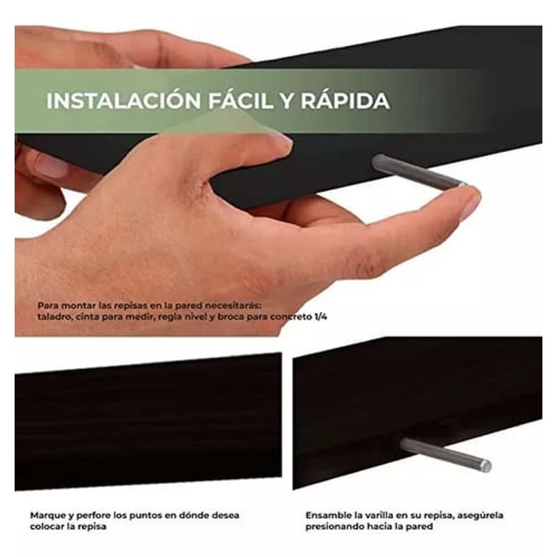 ¡Añade un toque de elegancia y organización a tu hogar! Estas repisas minimalistas no solo ofrecen un diseño elegante que complementa cualquier decoración, sino que también brindan una amplia capacidad de almacenamiento para tus objetos más preciados. Construidas con materiales de primera calidad, garantizan durabilidad y resistencia a lo largo del tiempo. Además, incluyen un kit de instalación para facilitar el proceso. Con unas medidas de 80x15cm y en el elegante color Negro, estas repisas se adaptarán perfectamente a tu espacio.
