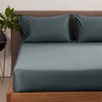 Set de sábana ajustable y fundas, confeccionado en tela sateen plain 400 hilos, 100% algodón de la más alta calidad que ofrece una suavidad y confort inigualables. Esta fibra 100% natural permite una circulación de aire óptima, manteniendo la frescura en las noches cálidas y proporcionando un confort acogedor durante las noches más frías. La suavidad del algodón crea una sensación de lujo al contacto con la piel, haciendo que cada noche se convierta en una experiencia de descanso reparador. Sus colores neutros se adaptan a cualquier espacio y estilo, dándole un toque único de sofisticación a tu cama. El elástico en todo el contorno de la sábana ajustable, garantiza un ajuste perfecto en tu cama, brindándote comodidad absoluta durante toda la noche. No incluye sábana plana.
