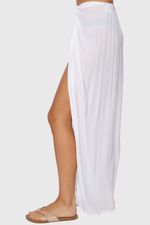 SALIDA DE BAÑO LARGA HANALEI SKIRT para mujer, es una prenda playera que se amarra en la cintura con un estilo moderno y fácil de usar. Su diseño viene en color blanco fondo entero. Te dará un look perfecto para las vacaciones y los días de sol.