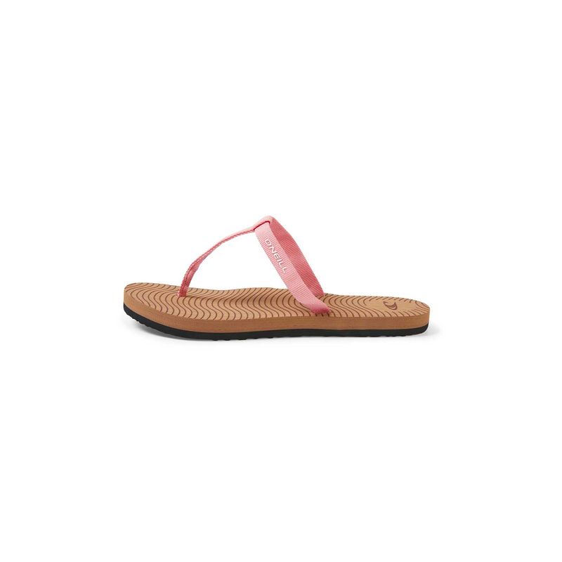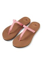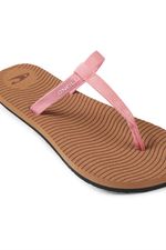 sandalias playeras COVE para mujer. Están hechas con materiales reciclados y equipadas con una delicada correa en color salmón, estas sandalias playeras son el complemento perfecto tanto para tus aventuras en la costa como para tu rutina diaria en la ciudad.