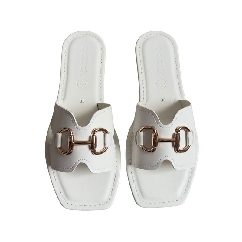 Sandalias Nica Blanco, tipo pala con herraje dorado que le dan el toque chic a cualquier look. Cómodas, elegantes y con vibra de CEO: para las que hacen que las cosas pasen