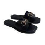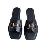 Sandalias Nica negro, tipo pala con herraje dorado que le dan el toque chic a cualquier look. Cómodas, elegantes y con vibra de CEO: para las que hacen que las cosas pasen