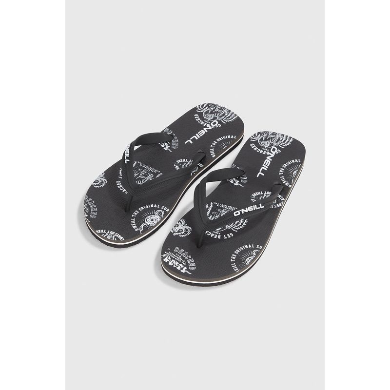 Descubre las Sandalias Playeras PROFILE GRAPHIC para hombrede O'Neill. Unas sandalias tres puntadas negras con diseño Get beached O'Neill blanco en la suela y correas negras con logo O'Neill en 3D. Tienen una plantilla fija suave y ligera con línea blanca en la entresuela que brinda comodidad y estilo durante todo el día a tus pies para mayor comodidad en tus días de descanso.