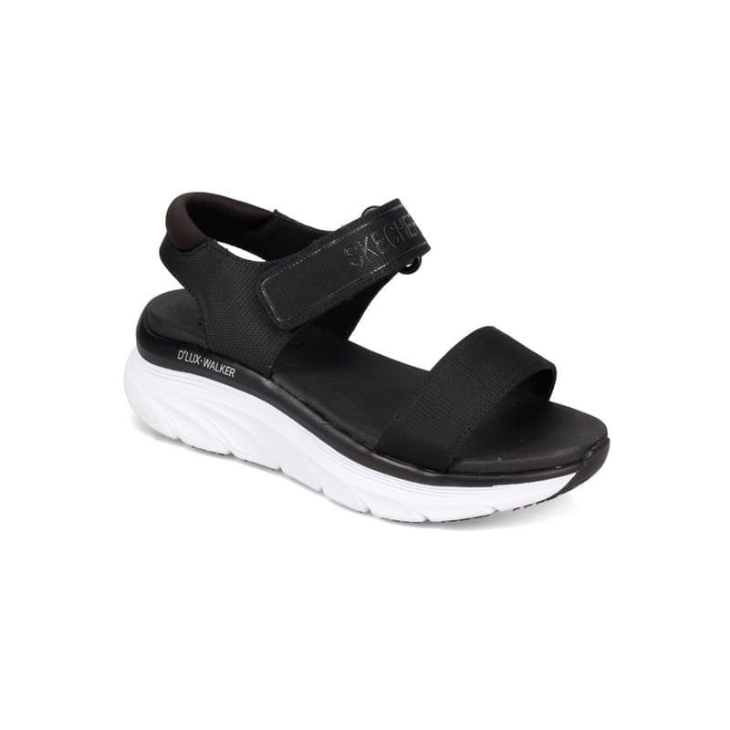 Sigue disfrutando del estilo más deportivo y flexible en verano sin problemas con la SKECHERS D Lux Walker New Block. Parte superior de tejido elástico y tejido sintético liso en una sandalia tipo pala con el talón descubierto, la plantilla SKECHERS Memory Foam de gel y la medio suela con amortiguación Dual-Lite Response.