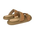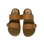 Capellada en sinteitco café miel, hebilla dorada, velcro en correas, suela en pvc acolchado café
