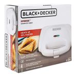 La sandwichera Black+Decker es ideal para quienes desean preparar sándwiches calientes de forma rápida y sin complicaciones. Con una potencia de 820 watts, esta unidad permite tostar, sellar y cortar hasta dos porciones a la vez, garantizando resultados uniformes en cada uso.