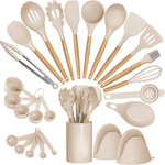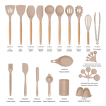 Set 21 Utensilios Cocina Silicona Madera Recipiente Almacenamiento