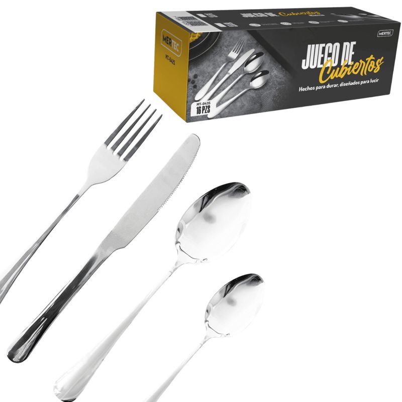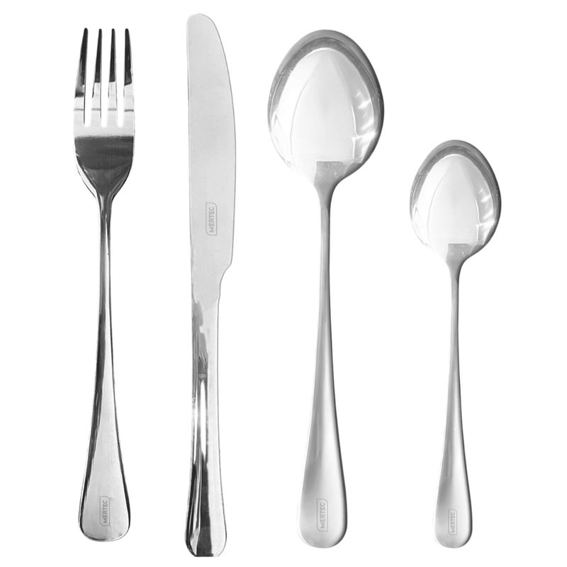 Set de Cubiertos MERTEC MT-042S de 24 Piezas - Acero Inoxidable, Diseño Moderno y Elegante, para 6 Personas - Color Plata