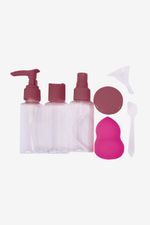 Práctico set de botellas de viaje reutilizables X7 unidades. Cada botella cuenta con tapa ajustable, asegurando que tus líquidos permanezcan seguros. Ideal para llevar diferentes productos de manera cómoda y organizada en todo momento.