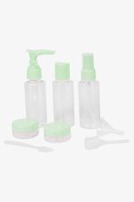 Práctico set de botellas de viaje reutilizables, X10 unidades. Cada botella cuenta con tapa ajustable, asegurando que los líquidos permanezcan seguros. Ideal para llevar diferentes productos de manera cómoda y organizada en todo momento.  Evita golpes fuertes o caídas. 3 Botellas/ Alto: 8cm Circunferencia: 10.5cm C/U 2 Envases/ Alto: 1cm Circunferencia: 12.5cm C/U