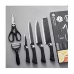 Este set de cuchillos de cocina son ideales para preparar tus comidas favoritas, cuenta con mango ergonomico y antideslizante, facil de usar y de limpiar gracias a su material de larga durabilidad, cada cuchilla esta forjada en acero inoxidable de alta resistencia, el amcho de la hoja del set de cuchillos es 1,5mm.