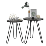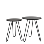 Set de mesas con patas metalicas, para ubicar objetos decorativos con medidas de: ANCHO 50 ALTO 59,5 PROFUNDO 40