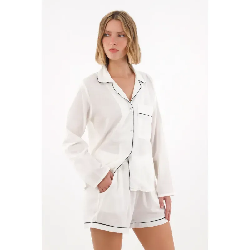 ¡Porque dormir bien también es un statement! Un set pensado para que la comodidad no esté peleada con el estilo; detalles clásicos y vivos contrastados hacen de este conjunto tu aliado perfecto para relax y chill nights.