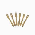 Set de seis (6) tenedores en bambú, perfectos para comer pequeños bocados de frutas y entremeses. Se pueden usar en reuniones formales e informales, y lavar en múltiples ocasiones reduciendo así el consumo de desechables que son fuente de contaminación. El bambú es una madera renovable y 100% biodegradable, libre de sustancias químicas y toxinas nocivas para la salud.