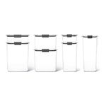 El juego Rubbermaid Brilliance Pantry mantiene los alimentos de la despensa frescos y organizados. Estos recipientes de Rubbermaid mantienen frescos los alimentos secos como azúcar, cereales, avena, nueces, arroz, bocadillos, café y comida para perros. Con un hermoso diseño, los contenedores de almacenamiento de alimentos son 100% herméticos, resistentes a roturas y apilables para adaptarse a cualquier despensa.