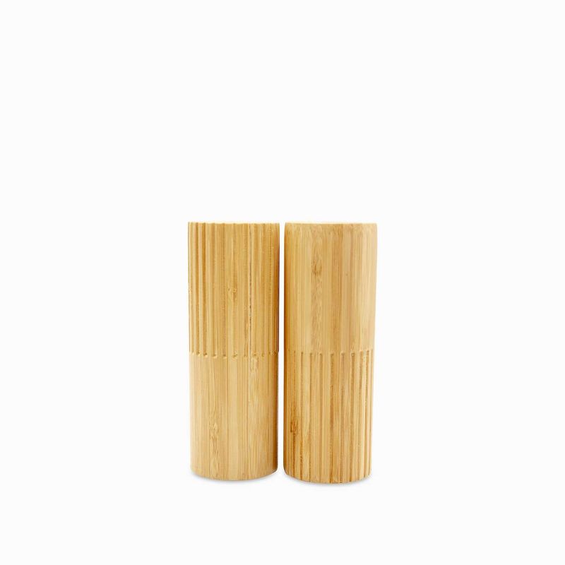 Salero y pimentero en bambú con capacidad de 40 ml cada uno, permite almacenar y servir en la mesa sal y pimienta, su diseño es clásico y atemporal.