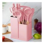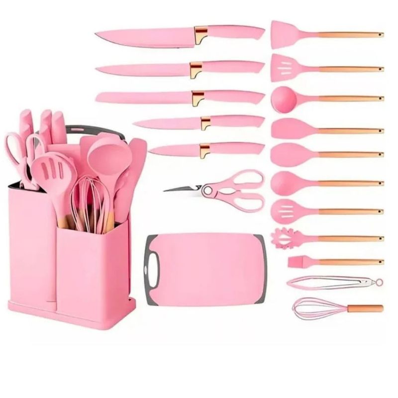 El set de utensilios de cocina de silicona con cuchillos y accesorios es la opción ideal para quienes buscan funcionalidad, diseño y organización en un solo conjunto. Su acabado en color rosa aporta un estilo moderno y elegante que transforma cualquier cocina en un espacio armonioso y atractivo.