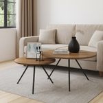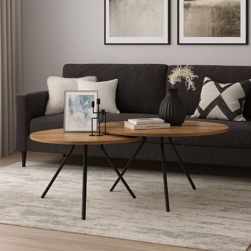 Set x 2 Mesas Prime Café, dale un aire moderno y sofisticado a tu hogar con este elegante set de mesas en color Cafe, elaboradas en resistente melamina de 15 mm con protección antimicrobiana del 99,9%, para que disfrutes de un espacio más seguro y limpio. Sus patas metálicas en color negro con pintura electrostática aportan no solo resistencia y durabilidad, sino también un diseño contemporáneo que combina con cualquier estilo de decoración.