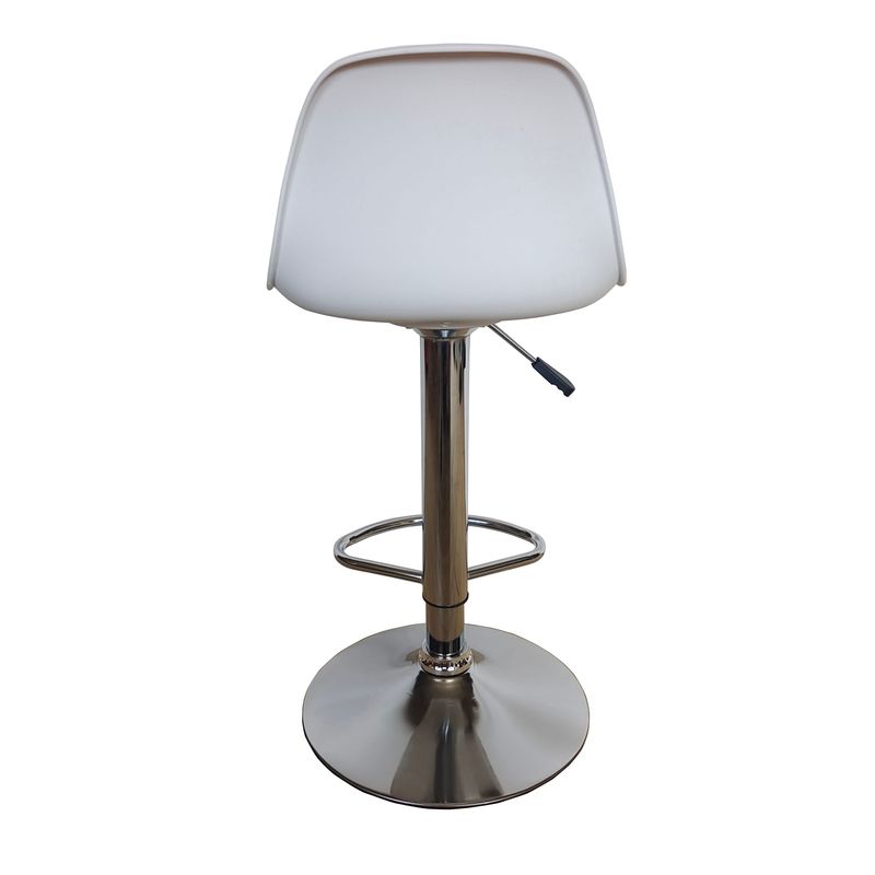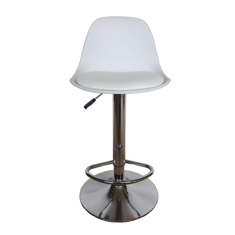 Set de Silla Bar con altura ajustable de 81 a 95, base metal cromado, diseño moderno con medidas de: ALTO 81-95 ANCHO 38 FONDO 34