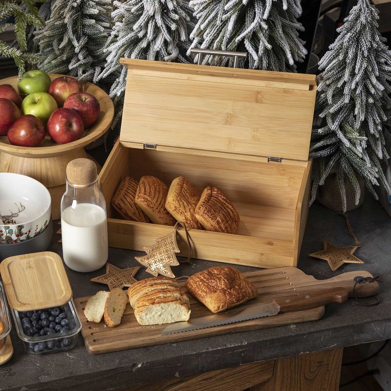 Set para cortar pan, utensilios esenciales en la cocina, contiene dos cuchillos en acero inoxidable con mango en acacia y tabla en madera.