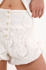 ¡Detalles delicados que se robarán las miradas! Este short en ojalillo redefine el estilo con su corte tipo globo y fajón ajustado que marcan la diferencia y te permiten crear combinaciones súper trendy.