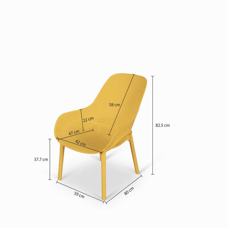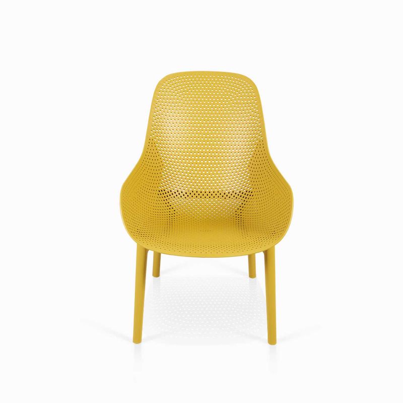 Silla Bávaro en color amarillo, con diseño moderno que se adapta a cualquier ambiente, su material la hace resistente y práctica para todos los espacios en casa.
