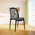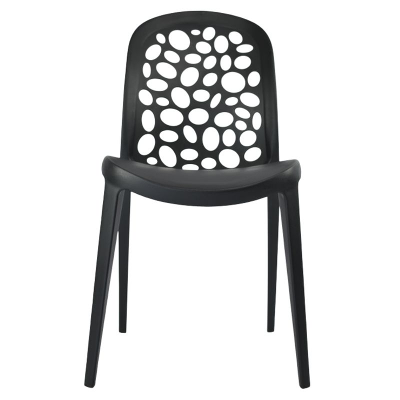 Su diseño calado en el respaldo no solo aporta un aspecto contemporáneo y elegante, sino que también favorece la ventilación, brindando una sensación de frescura y comodidad en cualquier ambiente. Esta característica, junto con su ergonomía, la hace ideal para largas sobremesas en el comedor, reuniones familiares en la terraza, o momentos de descanso en el balcón o el jardín.