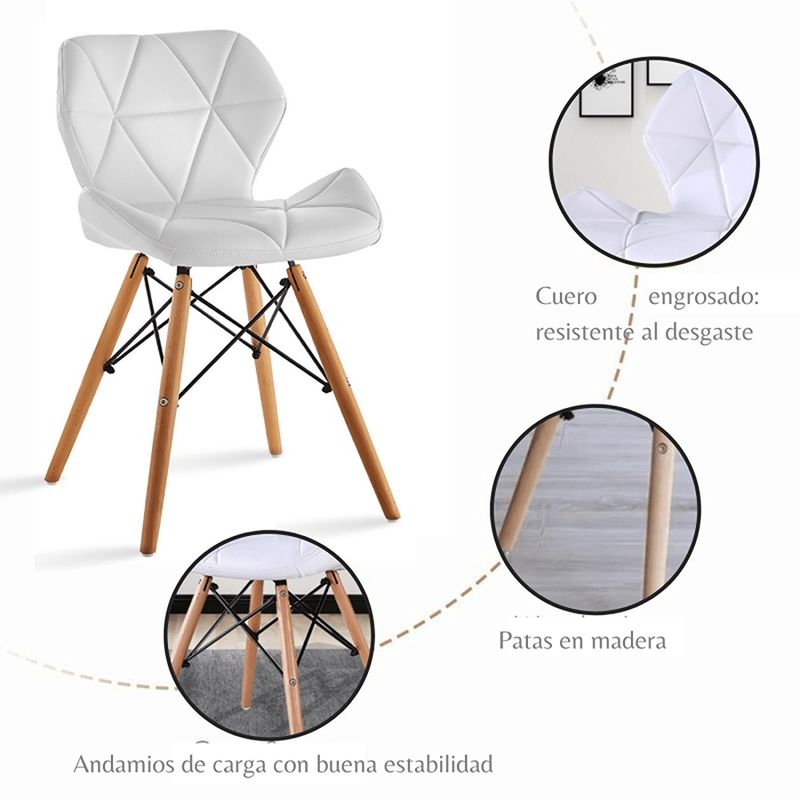 Comodidad y estilo en cada comida. Descubre nuestras sillas de comedor, diseñadas para complementar tu mesa y tu hogar. Silla de diseño en cuero sintético, perfecta para complementar espacios o mesas de comedor. Tiene patas de madera torneada con niveladores y espaldar que abarca toda la espalda para mayor comodidad y diseño. Las medidas de este producto son: Alto: 76 cm Ancho: 39 cm Fondo: 39 cm El plazo de entrega de este producto es de 3 a 5 días hábiles. Su garantía es de 1 año por defectos de fabrica. Los elementos decorativos y la ambientación no están incluidos con este producto.