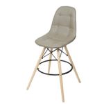 Perfectas para tu barra o isla de cocina. Descubre nuestras sillas de barra, el equilibrio ideal entre funcionalidad y elegancia.La Silla Eames con botones es una excelente opción para complementar la decoración de tu hogar. Diseñada para interiores, cuenta con una base redonda de madera pulida y varillas metálicas negras que recrean la clásica estructura tipo Eiffel. Su diseño destaca por combinar estilo, ligereza y solidez. El asiento está fabricado en polipropileno de alta durabilidad, tapizado en eco cuero y acolchado con espuma de alta densidad para mayor confort.Las medidas de este producto son:
