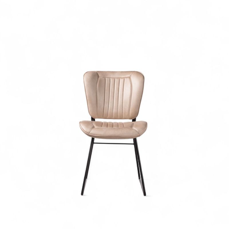 Silla para comedor tapizada en poliuretano, con patas rectas color champagne, esta silla además de su aspecto elegante y minimalista, proporciona una estructura firme para sentarse.