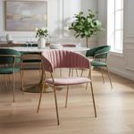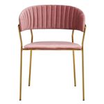 La moderna silla de comedor de terciopelo con patas doradas es la opción perfecta para mejorar su experiencia gastronómica. Estas sillas están diseñadas con un patrón de líneas estriadas clásico que agrega sofisticación a cualquier comedor. El elegante diseño se complementa aún más con la elegante cubierta de terciopelo, que irradia lujo y opulencia.