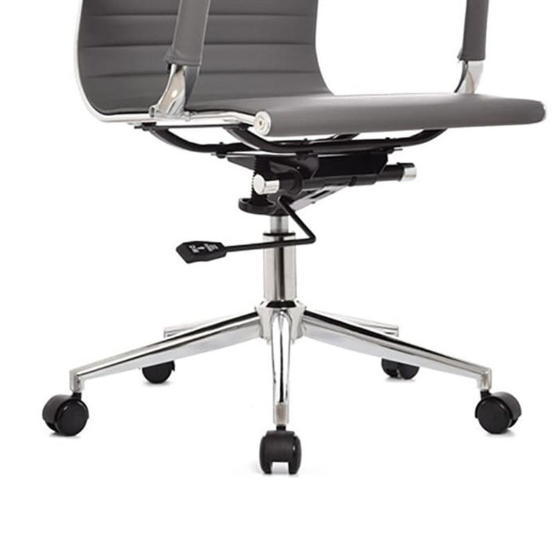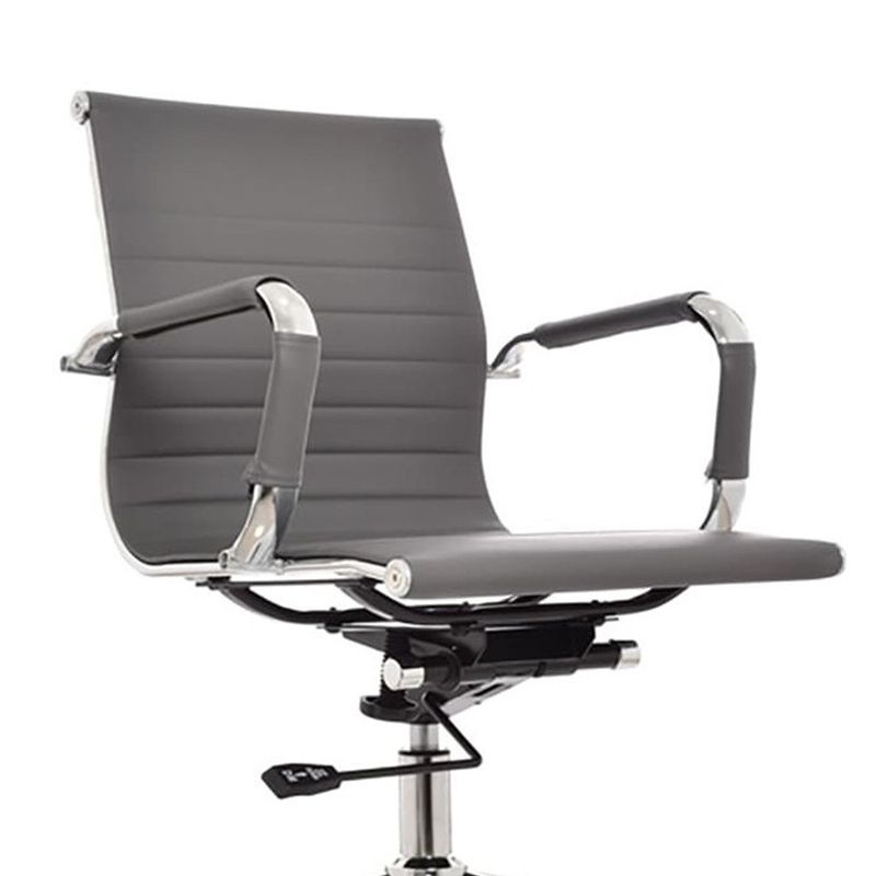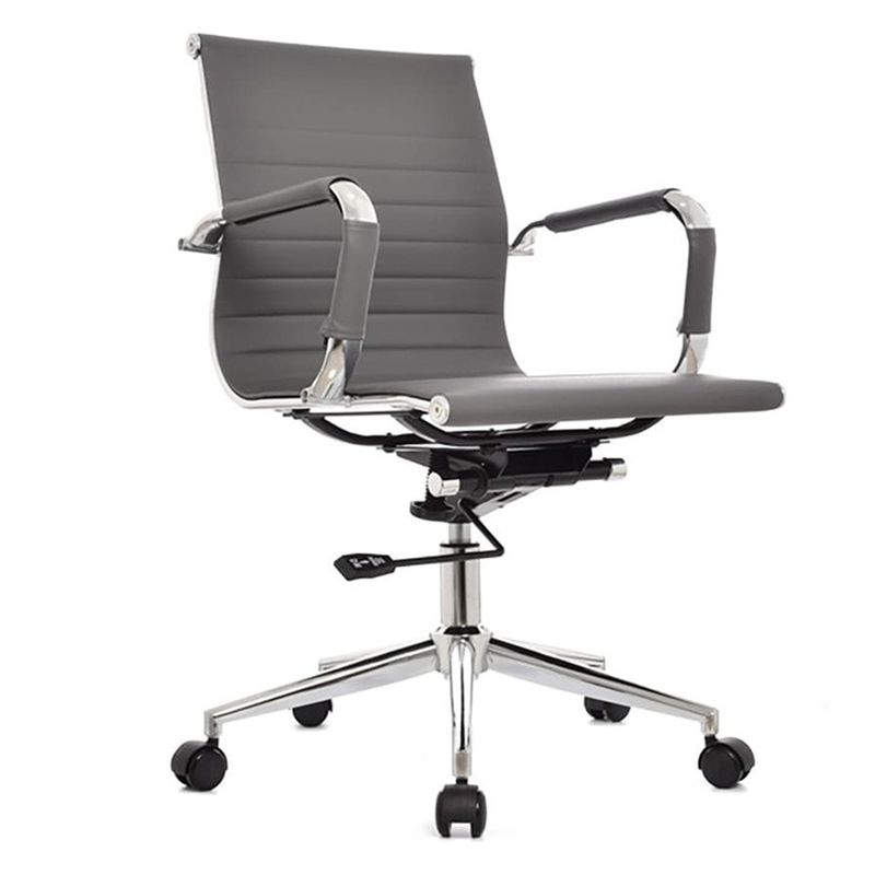 Silla de oficina tipo presidente con espaldar alto y diseño ergonómico. Cuenta con marco perimetral en metal cromado, tapizado en cuerina tanto en el espaldar como en el asiento, brindando comodidad y un acabado elegante. Los brazos tienen estructura metálica cromada con cobertor en semicuero para mayor confort. Incorpora mecanismo basculante, base cromada de 64 cm y ruedas de nylon de 50 mm que permiten un desplazamiento suave y silencioso. Ideal para espacios ejecutivos.