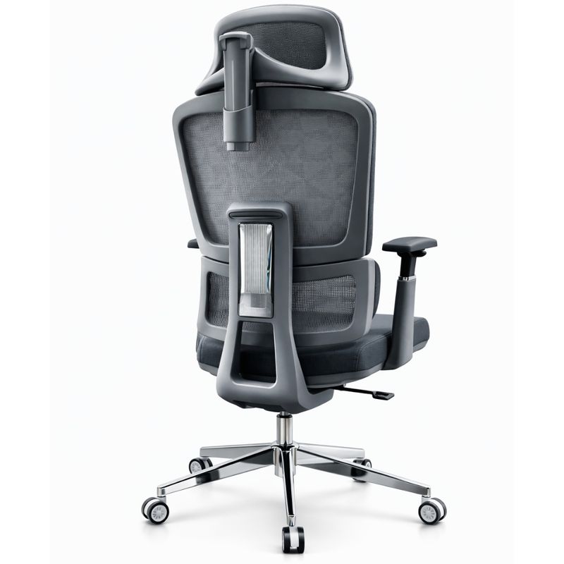 El respaldo ofrece seis niveles de ajuste de altura, permitiendo una configuración precisa para personas con estaturas entre 1,55 m y 2 m. Esta capacidad de personalización favorece una postura correcta, reduce la presión en la zona baja de la espalda y contribuye a disminuir la fatiga durante jornadas prolongadas.