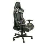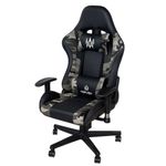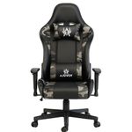 Materiales de alta calidad tapizada en cuero PVC adiciona con diseño camuflado, incorporta soporte cervical y lumbar, reposabrazos 1D en polipropileno reforzado en color negro, reclinación hasta 180° del espaldar, sistema de ajuste en altura, base en polipropileno de 5 aspas con ruedas de silicona.