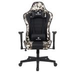 Materiales de alta calidad tapizada en cuero PVC adiciona diseño camuflado, incorpora soporte cervical y lumbar, reposabrazos 1D en polipropileno reforzado en color negro, reclinación hasta 180° del espaldar, sistema de ajuste en altura, base en polipropileno de 5 aspas con ruedas de silicona.