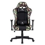 Materiales de alta calidad tapizada en cuero PVC adiciona diseño camuflado, incorpora soporte cervical y lumbar, reposabrazos 1D en polipropileno reforzado en color negro, reclinación hasta 180° del espaldar, sistema de ajuste en altura, base en polipropileno de 5 aspas con ruedas de silicona