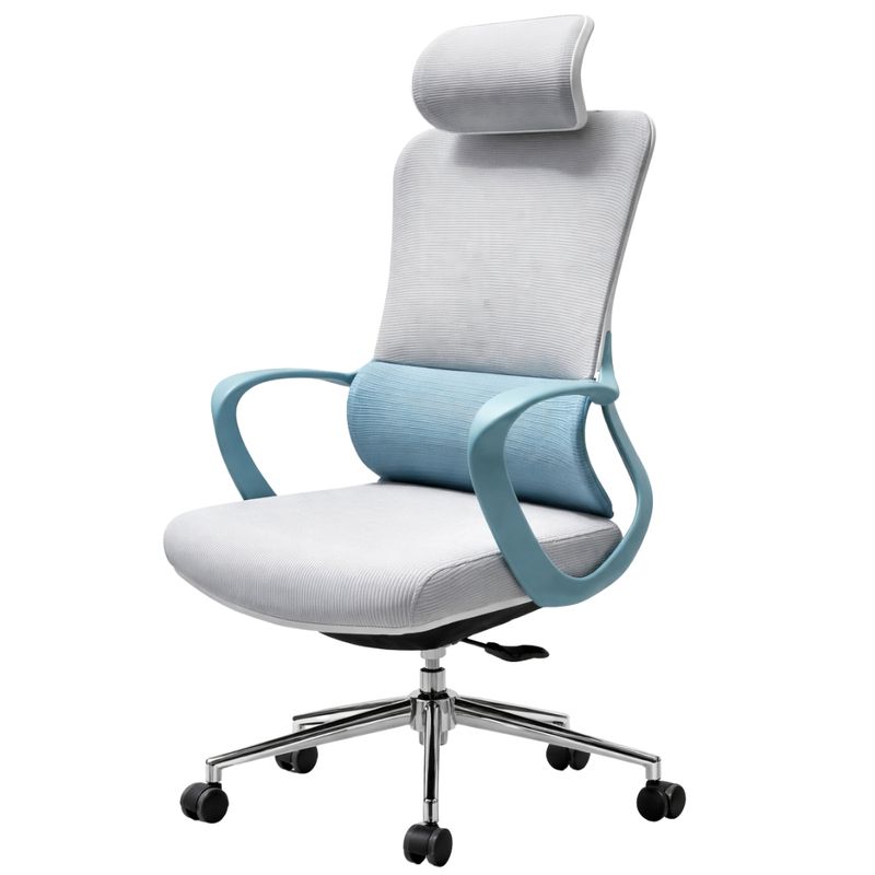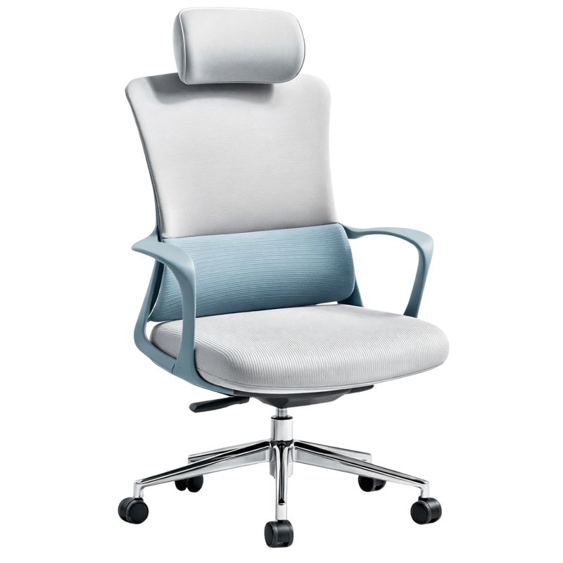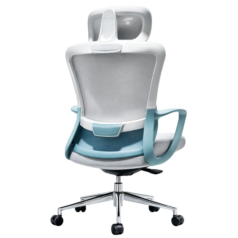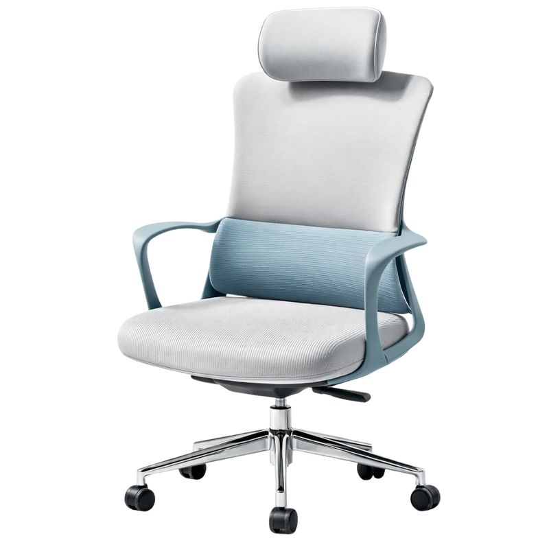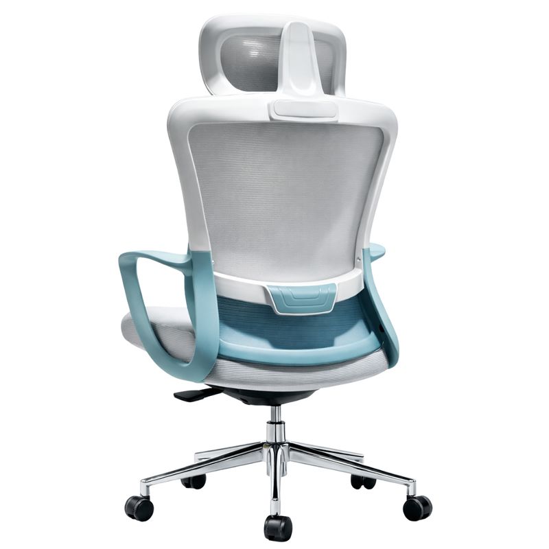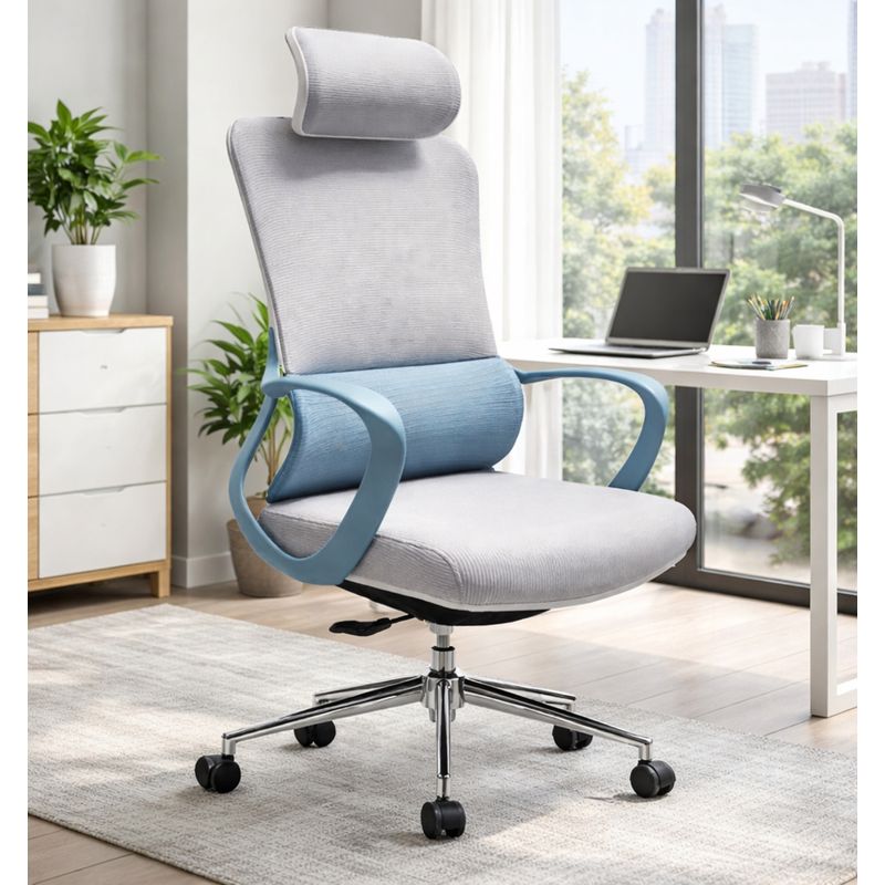 El respaldo alto con malla transpirable permite una correcta circulación del aire, ayudando a mantener una sensación de frescura incluso durante jornadas prolongadas. Esta característica es clave para evitar la acumulación de calor y mejorar el confort diario. Además, incorpora un apoyacabezas ergonómico que brinda soporte adecuado a cuello y cabeza, reduciendo la tensión cervical y favoreciendo una postura más natural.