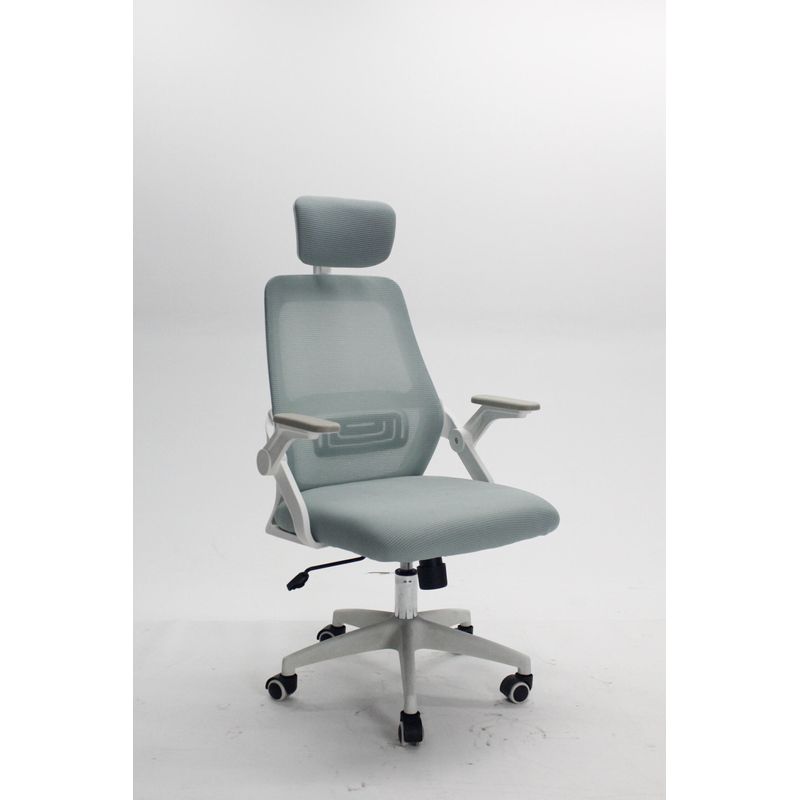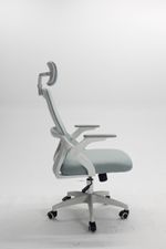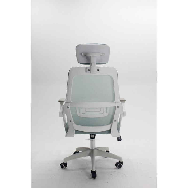 empresarial, posee una estructura elaborada en polipropileno inyectado y reforzado, su asiento y cabecero son tapizado en malla de diseño lineal, permitiendo asi el flujo de aire, cuenta con un asiento de espuma de alta densidad para dar comodidad en largas horas de trabajo, posee reposabrazos y una estrella de color blanco en polipropileno de cinco puntas con ruedas en naylon, La altura es ajustable e incorpora un sistema de elevación de altura mediante cilindro hidráulico con certificación BIFMA de segunda categoría haciendo uso de palanca.