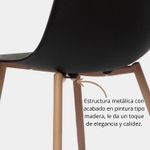 La monoconcha inyectada en polipropileno ofrece una superficie ergonómica y cómoda para sentarse, mientras que la estructura metálica con acabado en pintura tipo madera le da un toque de elegancia y calidez. Información adicional: Las sillas de polipropileno son una elección popular debido a su durabilidad y resistencia, manteniendo su integridad a lo largo del tiempo.