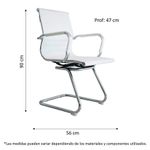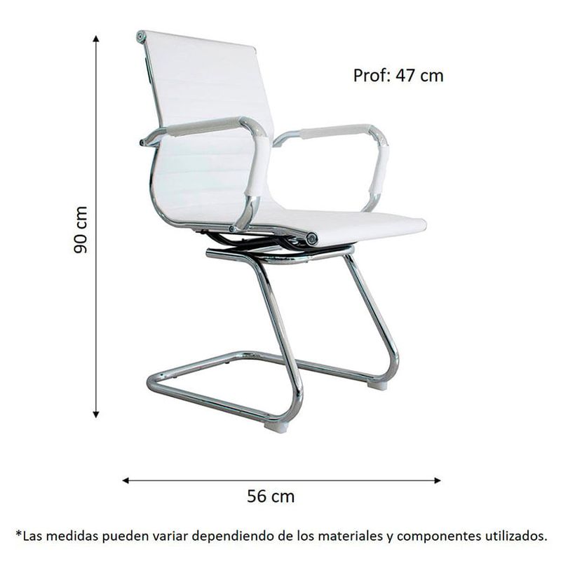 La silla Plata cuenta con un espaldar alto, marco perimetral en metal cromado y tapizado en cuerina. Su asiento es tapizado en cuerina, y tiene mecanismo basculante, base giratoria cromada de 64 cm, ruedas de nylon de 50 mm y estructura metálica cromada con cobertor en semicuero.