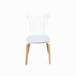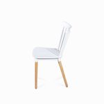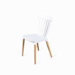 Silla de la colección Rail con asiento y espaldar en polipropileno color blanca y patas en madera de haya. Con diseño moderno para sala o comedor, que se adapta a cualquier ambiente, su material la hace resistente y práctica para todos los espacios en casa.