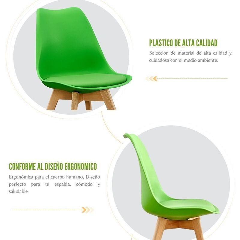 Comodidad y estilo en cada comida. Descubre nuestras sillas de comedor, diseñadas para complementar tu mesa y tu hogar. La Silla Milano con su diseño Italiano es perfecto para encajar en la decoración. Con su estructura en polipropileno, asiento acolchado. Patas de madera de haya y acabado roble. El grosor de la espuma del espaldar es 3cm y del asiento: 5cm. Las medidas de este producto son: Alto: 83cm Ancho: 49 cm Fondo: 42 cm El plazo de entrega de este producto es de 3 a 5 días hábiles. Su garantía es de 1 año por defectos de fabrica. Los elementos decorativos y la ambientación no están incluidos con este producto.
