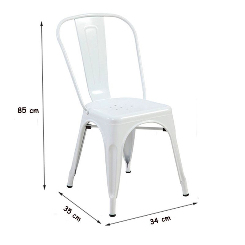 Comodidad y estilo en cada comida. Descubre nuestras sillas de comedor, diseñadas para complementar tu mesa y tu hogar. La Silla Turca en estructura Metálica con acabado en Pintura en polvo. Ideal para exteriores puesto que es resistente al agua. Uso para restaurantes, cafés, decoración habitaciones, auxiliares, comedor y balcones. Las medidas de este producto son: Alto: 83cm Ancho: 35 cm Fondo: 36 cm El plazo de entrega de este producto es de 3 a 5 días hábiles. Su garantía es de 1 año por defectos de fabrica. Los elementos decorativos y la ambientación no están incluidos con este producto.