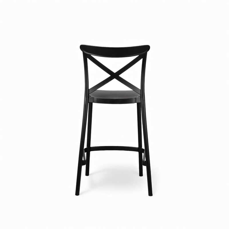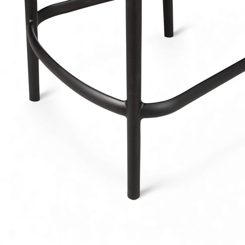 Ideal para barras de cocina o mostradores de altura 65 cm, aportando un asiento funcional y un diseño limpio y moderno. Su estructura integral de polipropileno garantiza durabilidad extrema, resistencia al agua y una limpieza increíblemente sencilla. El diseño ergonómico y el color negro la convierten en una opción versátil que amplía visualmente cualquier espacio.