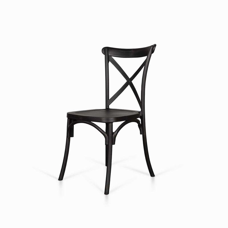 Silla con estructura y asiento en polipropileno con espaldar en forma de X, de estilo clásico y atemporal, que se adapta a cualquier cualquier ambiente, su material la hace resistente y práctica para todos los espacios en casa