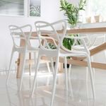 Silla en polipropileno de la colección York en color blanco, con espaldar en líneas curvas, con diseño moderno que se adapta a cualquier ambiente, su material la hace resistente y práctica para todos los espacios en casa.
