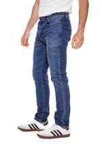jean slim fit, lavado tono medio con hilos en contraste