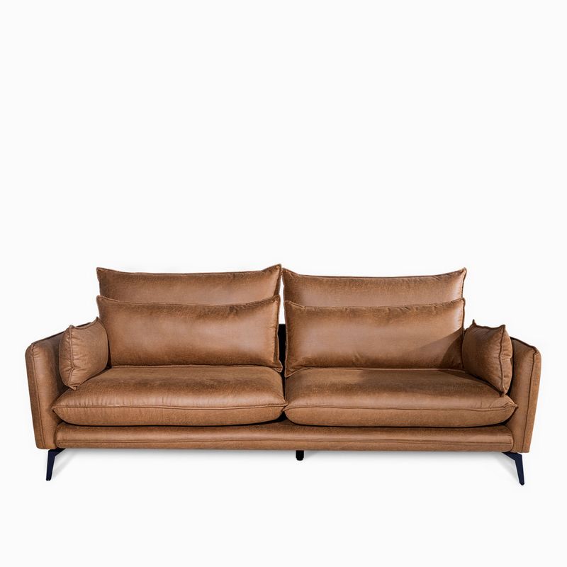 Material | Estructura en madera maciza dura, tejido gofrado, relleno en espuma y resortes, patas en metal. |